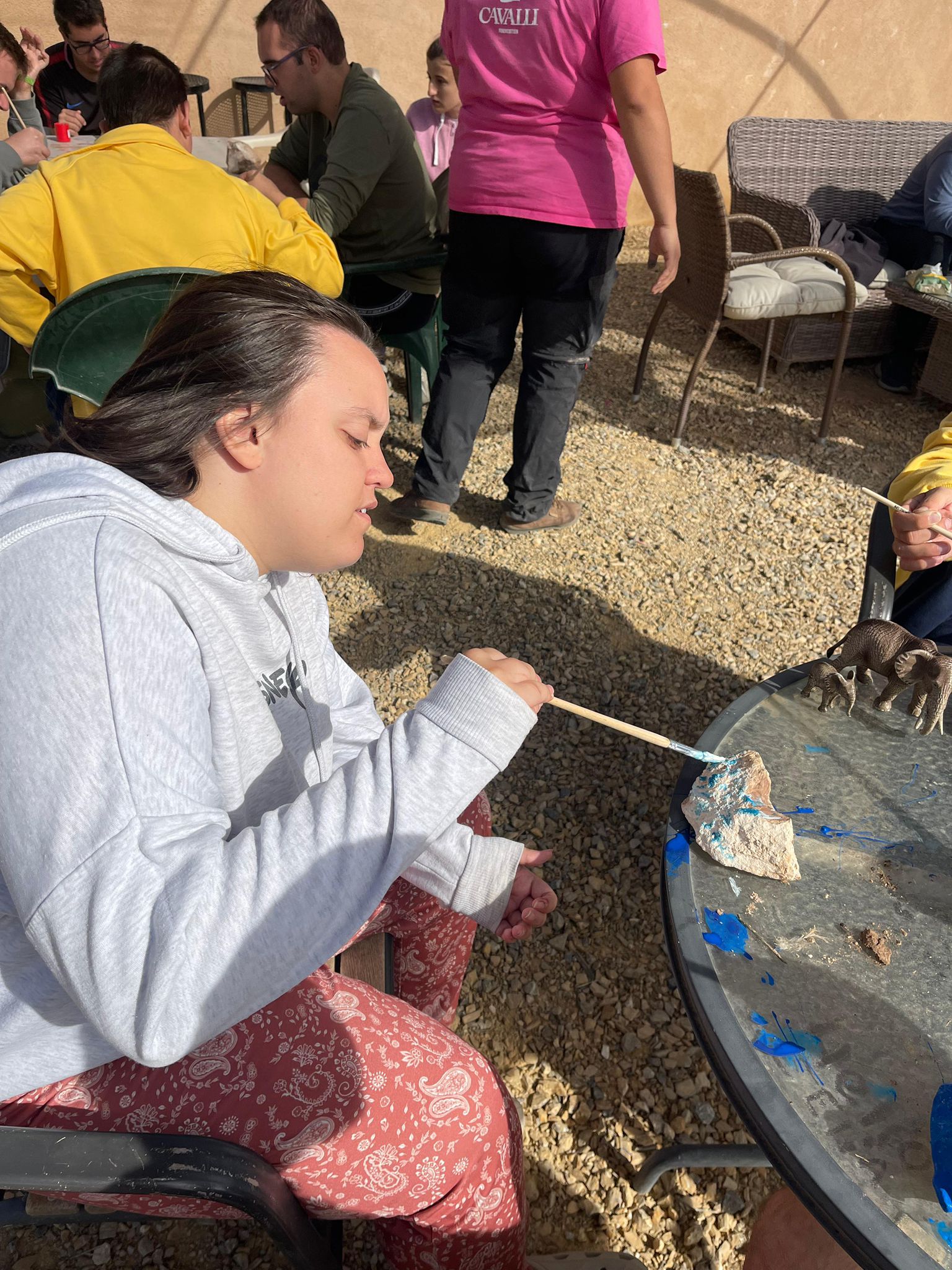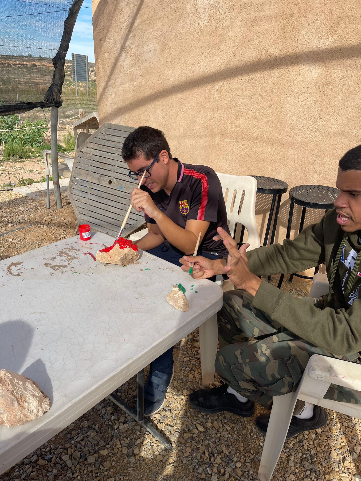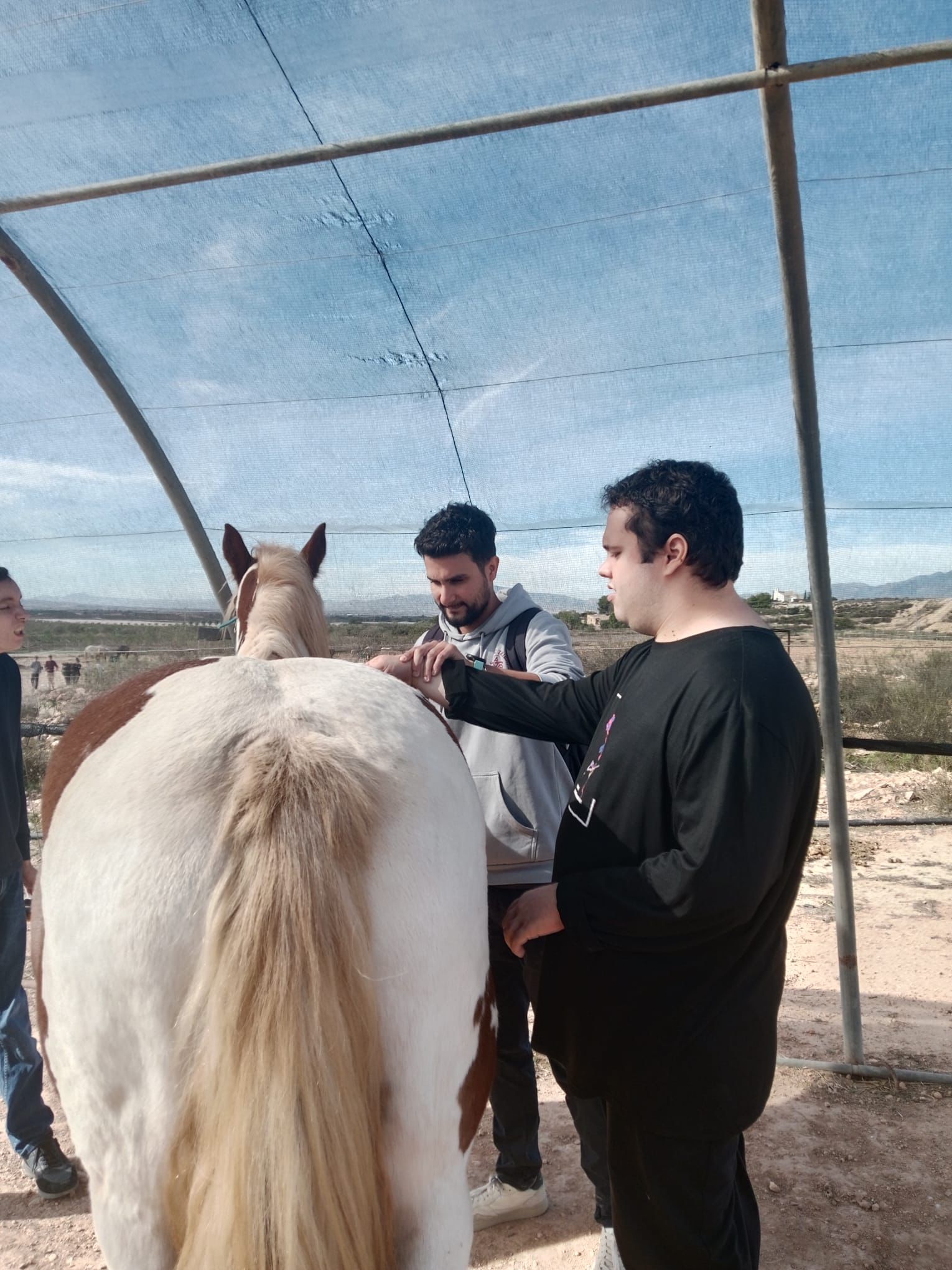 Durante la excursión, tuvimos la oportunidad de interactuar de forma directa con los animales, participando en actividades como cepillar a los caballos, acompañarlos en su paseo y decorar el entorno pintando piedras, dejando nuestra huella creativa en un lugar que transmite paz y bienestar. Estas experiencias favorecen la regulación emocional, reducen el estrés y refuerzan la autoestima y la comunicación, todo ello desde el respeto a los ritmos individuales y el vínculo con los animales.